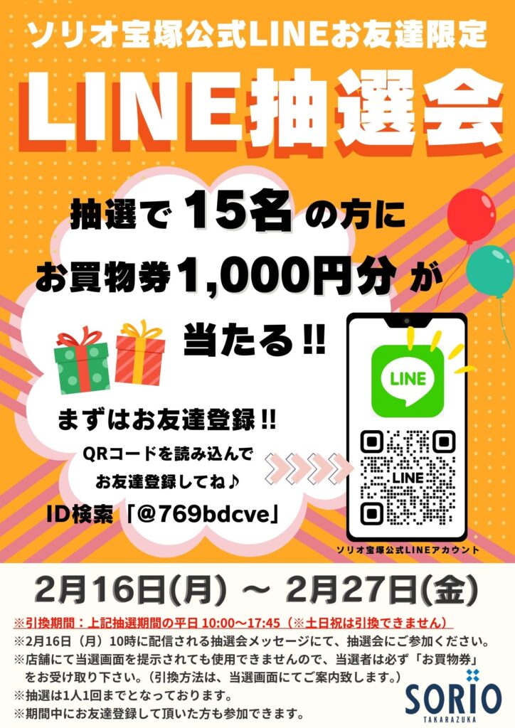ソリオ宝塚公式LINEお友達の方限定!(期間中お友達登録してくれた方も参加できます!)