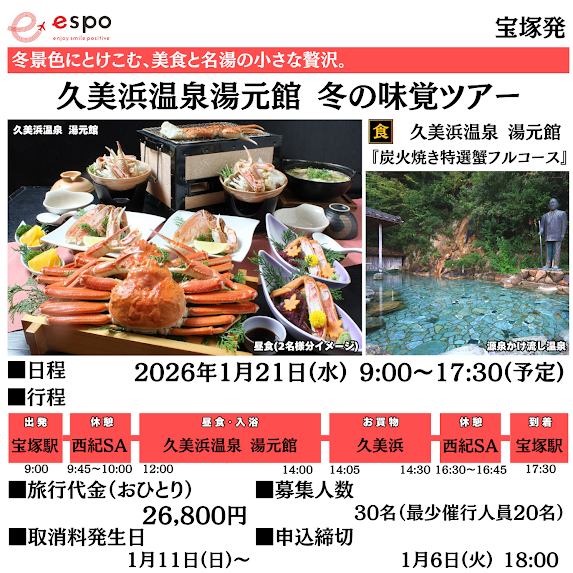 🚍 コース:久美浜温泉 湯元館 冬の味覚ツアー