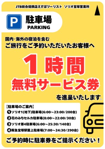 ・阪急宝塚駅屋上駐車場(7:00~24:30/290台)